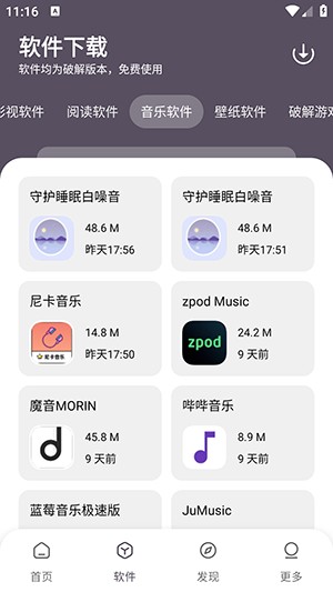 这里以音乐软件版块里面的“哔哔音乐”为例,点击“下载”即可。