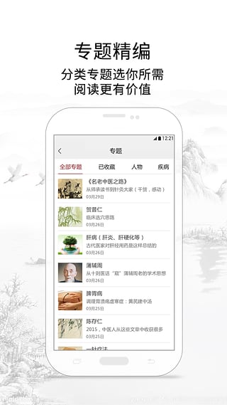这是一款专门提供中医资讯的健康管理类应用程序。软件包含阅读文章、热门专题、音频播放、临床频道、全面搜索、病例回顾等功能。用户在使用时可以随时查阅大量的中医资讯、精选文章和中医经典,并能够一键搜索海量的中医文献,帮助你便捷地学习中医知识。