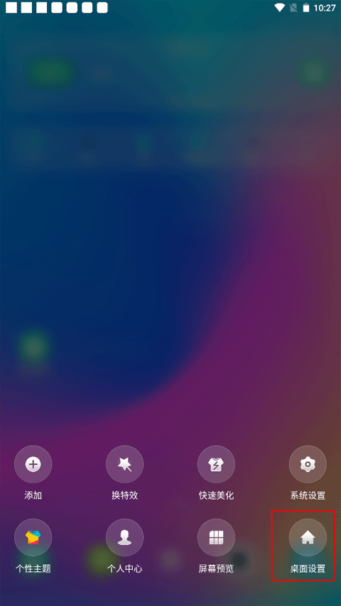 1、长按桌面空白处,这时下方弹出了几个功能选项,点击桌面设置;