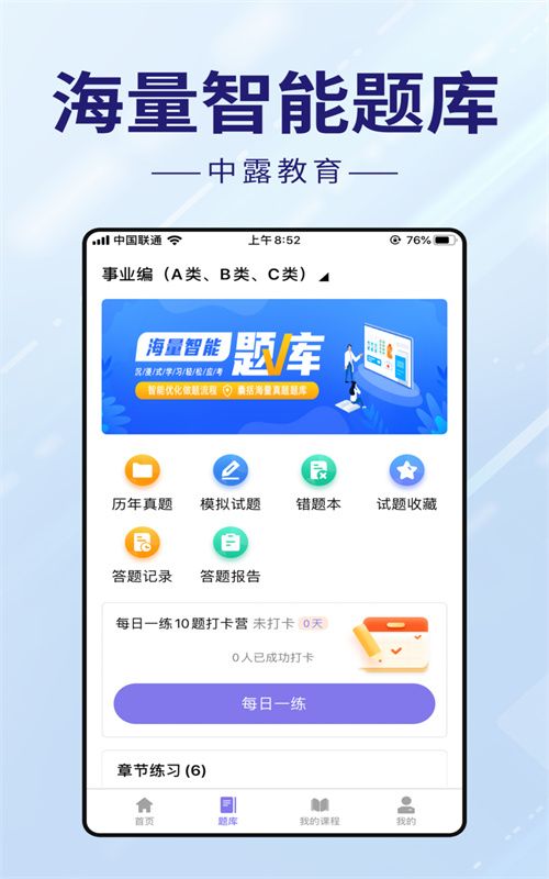 中露教育的手机版 APP 能给众多有考试需求的用户给予一站式的辅导帮助,在网上汇集了好多优质的课程资源,直接在网上就能挑到适合自身的课程。并且这个平台还有超多的题库内容能随时更新,你能轻松地在网上刷题复习,要是有啥错题还能直接收藏好,这极大地提高了考试的通过概率。