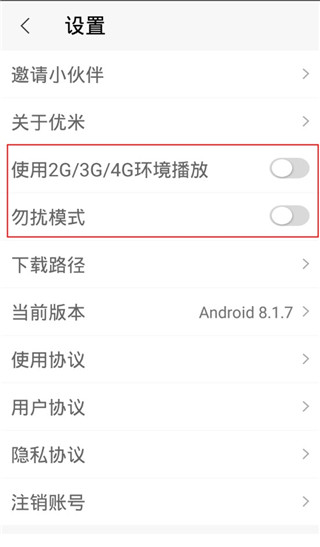 用户还可以选择“我的”-“设置”,进行对勿扰模式的开关以及使用流量的环境等。