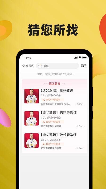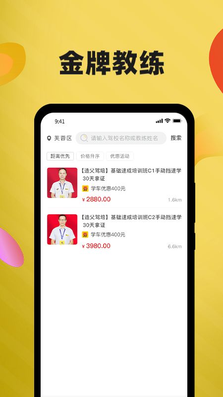 聊天,教练与学员之间、学员与学员之间均可在聊天室内畅通的沟通交流,对学车时遇到的问题进行提问和解答,对学车心得和体验进行分享;峥嵘造父,对所有入驻造父驾培APP的校区进行宣传推广,包括但不限于校区LOGO、校区名称、校区电话、好评数、校区地址、校区风景图、教练团队等。