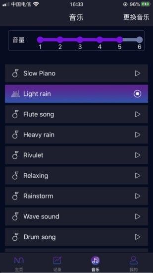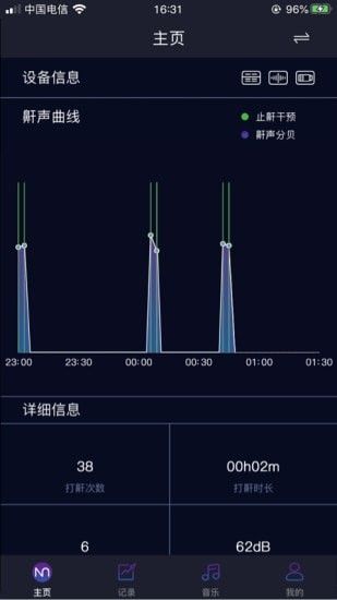 接着制作图表和提供详细信息供用户参考;此外,还能够操控止鼾器进行播放、暂停或更换助眠音乐。