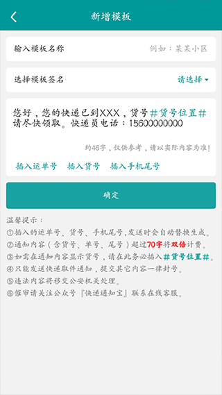 适用于快递、物流、外卖行业,仅支持发送格式规范的取件通知。不支持发送营销通知,违者封号处理。