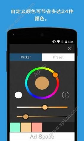 3、您可以保存的24种颜色自定义颜色。点击并按住自定义调色板删除保存的颜色。