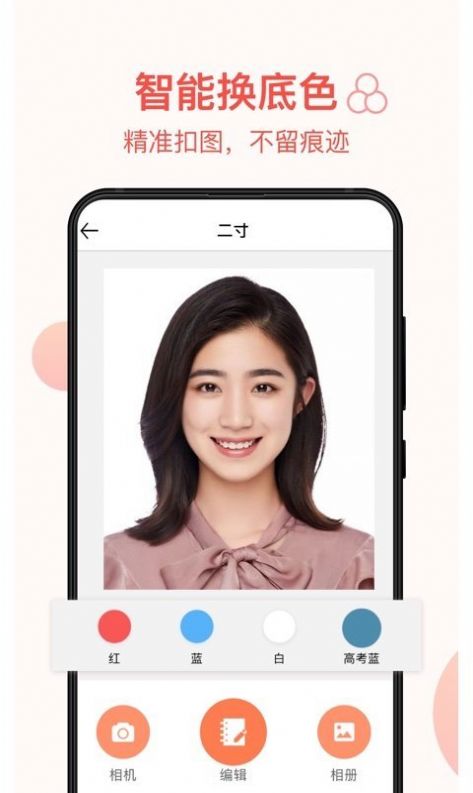 证件照照相机一键修改照片背景(支持红底,蓝底,白底等),随意换背景;