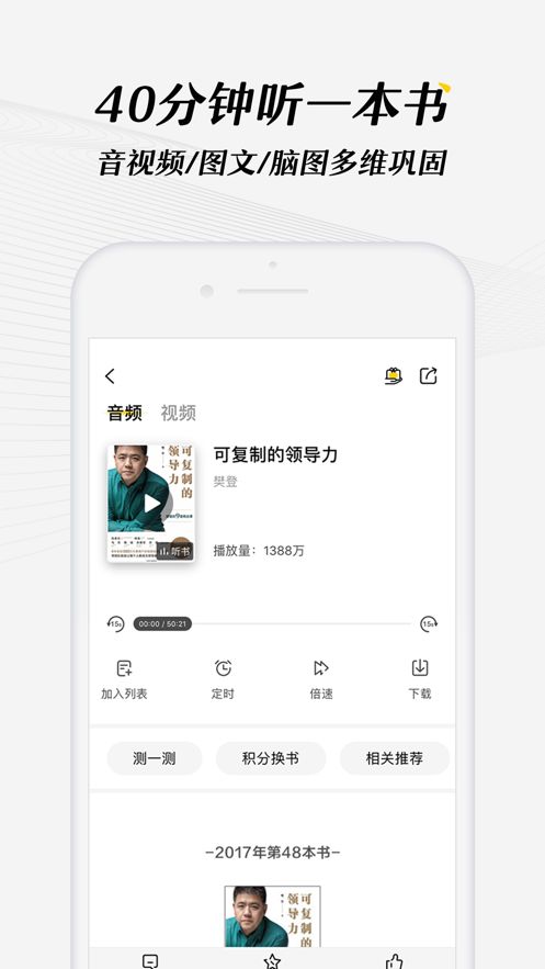 2.40分钟听一本《可复制的领导力》、《赋能》、《指数型组织》……,与行业大师、业内新锐并肩携手,始终做正确的事。