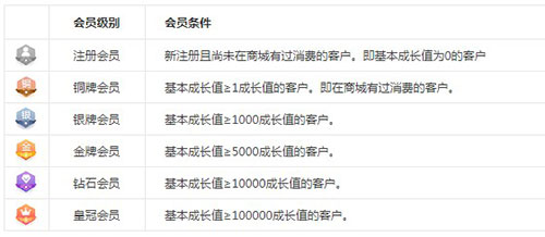 立创商城会员共分6级,具体为:注册会员、铜牌会员、银牌会员、金牌会员、钻石会员、皇冠会员。级别由系统根据基本成长值自动计算,无需申请。 基本成长值根据您的消费额度累加,1元货款可累加1成长值,在订单发货后由系统自动累加。