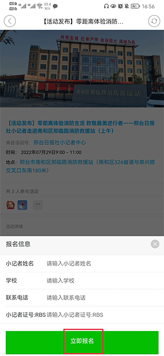 四、将姓名、联系方式等填写完成后,点击立即报名即可