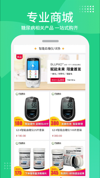 便捷提供血糖仪、血糖试纸、控糖食品、胰岛素泵、胰岛素笔等糖尿病相关产品,让糖尿病患者足不出户即可享受优惠的产品与质美的服务。