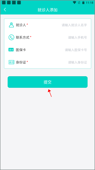 3、输入自己的身份证信息和医保卡信息后点击提交就添加完成了。