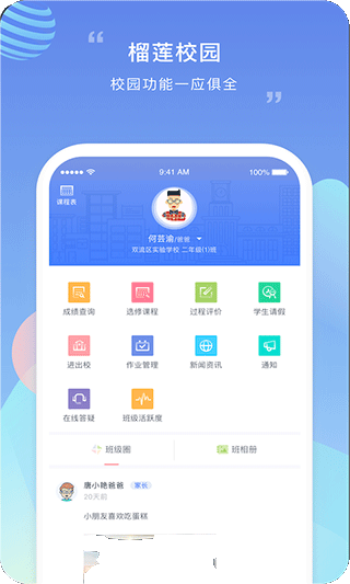 此外,榴莲校园家长端还提供成绩查询、课程表查询、过程评价、学校通知等功能。家长可以通过手机查看孩子各科考试成绩,实时了解班级排名和年级排名等信息。如有问题,可随时联系孩子的老师,并能在线申请请假审批。家长可以对老师关于孩子的评价进行反馈。需要的家长请尽快下载。