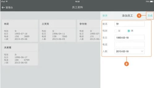 在屏幕右侧填写员工的各项信息,确认无误后点击“完成”
