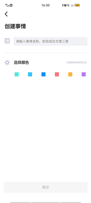 2、在清单界面点击清单名称下方的+号创建事情,然后选择相应的颜色,点击提交即可添加。