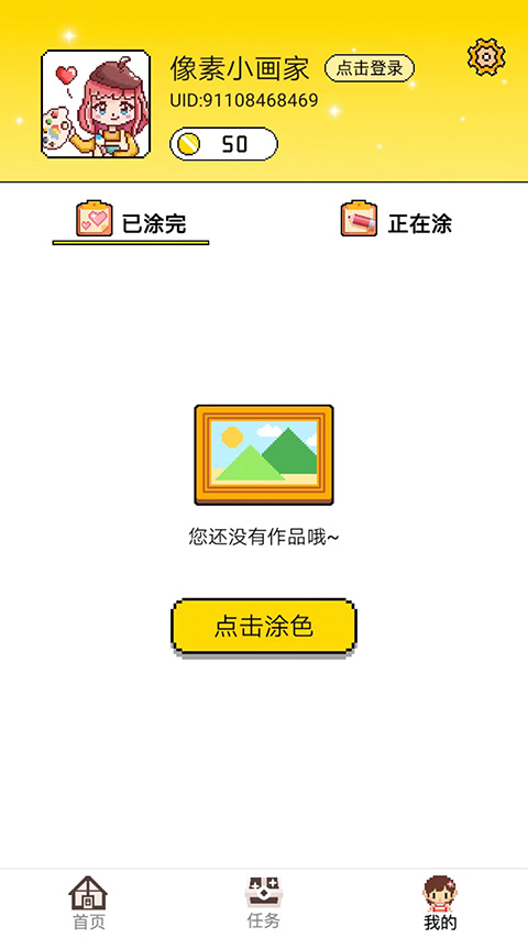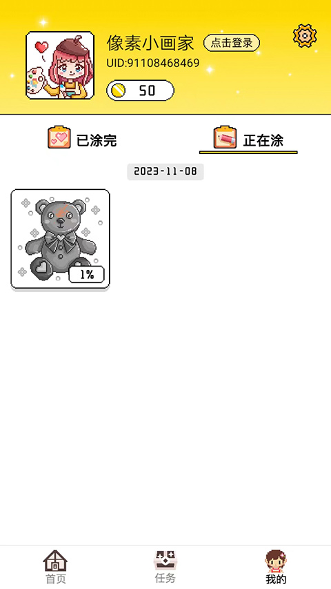 7、进入我的界面,这里可以看到当前已涂完和正在涂的作品,以上就是像素小画家最新版的玩法了。