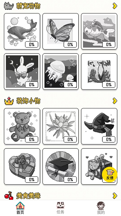 值得一提的是,像素小画家游戏不仅为玩家们提供了众多的游戏关卡,还准备了丰富多彩的图案素材,所有图稿都是由插画师精心挑选制作,适合所有年龄段的人群游玩,玩家可以选择不同的图案玩法进行解压,不仅能够帮助你放松身心,还能够锻炼你的观察能力和创造力,感兴趣的小伙伴们可千万不要错过了。
