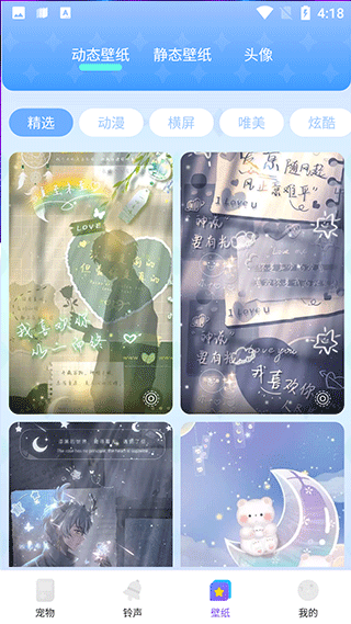 3、在壁纸板块,挑选你觉得好看的壁纸设置为桌面,里面有静态壁纸、动态壁纸以及头像。