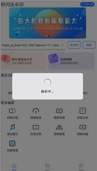 然后我们将需要处理水印的视频链接粘贴在这个框框中,点击去水印