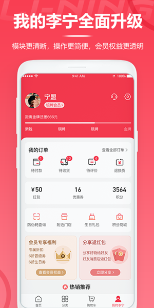 加入会员即可享受会员生日6折券、会员晋级6折券、会员晋级满100减50元券