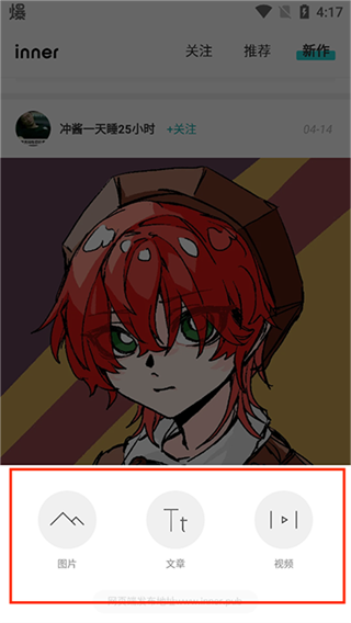 inner官方版汇集了来自全国各地的创作者,建立了一个自由且充满乐趣的交流分享社区。在这里,用户可以发布自己的文章、画作、照片等作品,并与其他创作者互动交流,该平台重视优质内容的展示与分享。通过严谨的审核流程,inner精选出优秀作品进行展示,确保用户能获取到高质量的创作内容。