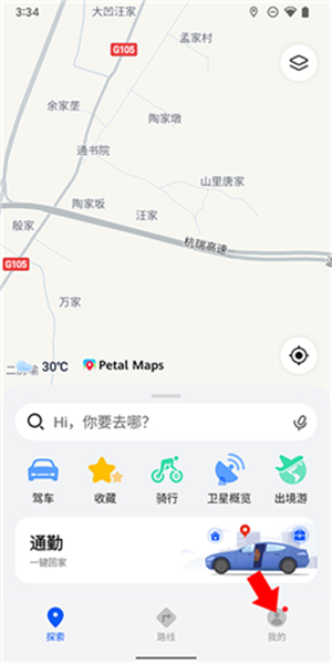 在本站下载并安装Petal地图,打开应用后点击应用右下角的“我的”