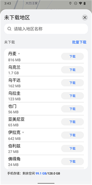 安装完基础数据后,点击下方的“未下载地区”选项并选择想要下载的地区地图资源即可(注意部分国家地区暂无离线地图资源)