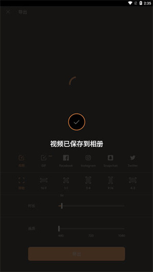 选择导出的视频时长,画质等
