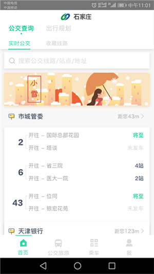 在这款软件首页上,你可以点击地图或输入线路名称、站点名称进行查询,从而获取公交车辆实时位置信息。