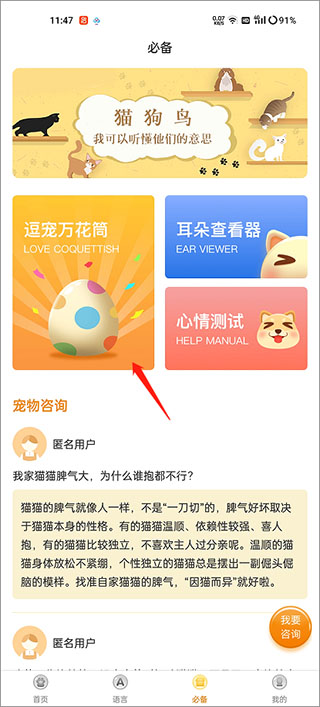 1、平台上提供了一个智能的宠物叫声翻译工具,每天可以轻松地翻译您宠物的叫声。