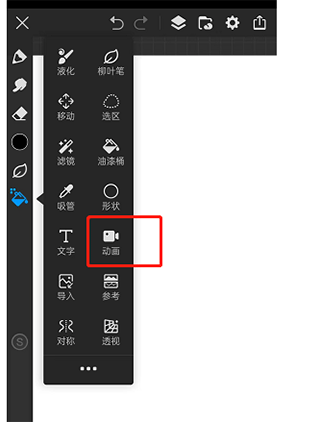 2、第二步:点击左侧工具栏中的【动画】工具,若不在工具栏内,可点击四个小正方形的图标以显示所有工具,如下图所示:
