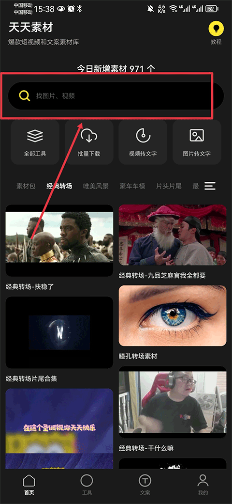 海量视频、文案、图片素材,各种高清素材一键获取。