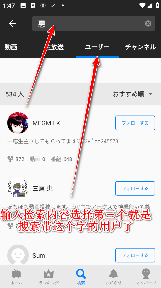 3.输入你的搜索词,选择第三个就是带这个字的用户了