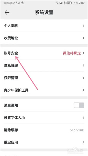 3、进入系统设置的页面选择“账号安全”选项