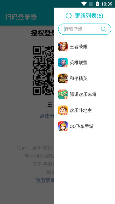 4、直接使用软件,扫描二维码即可使用微信QQ或其他服务登录。 该软件安全性高,支持扫描二维码登录数百款热门游戏。