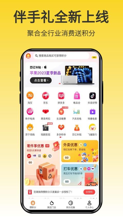 伴手礼APP是一款集成了多种场景消费服务的应用程序,该应用整合了淘宝、京东、拼多多和唯品会等多个主流电商平台,方便用户在此轻松购物,并提供了大量的网购优惠券。用户可以通过领取这些优惠券来享受购物折扣。此外,还包含了外卖、打车、寄送以及特价电影等跨行业的消费优惠,使用户能够便捷地享受各种优惠。丰富的优惠券能帮助用户在线购物节省大量费用。同时,用户还可以通过积累积分来兑换礼品,积分兑换不仅能让用户免费获得心仪的礼物,而且非常实惠。用户在在线购物时就能获得积分。有需求的用户快来下载伴手礼官网版应用程序体验吧!