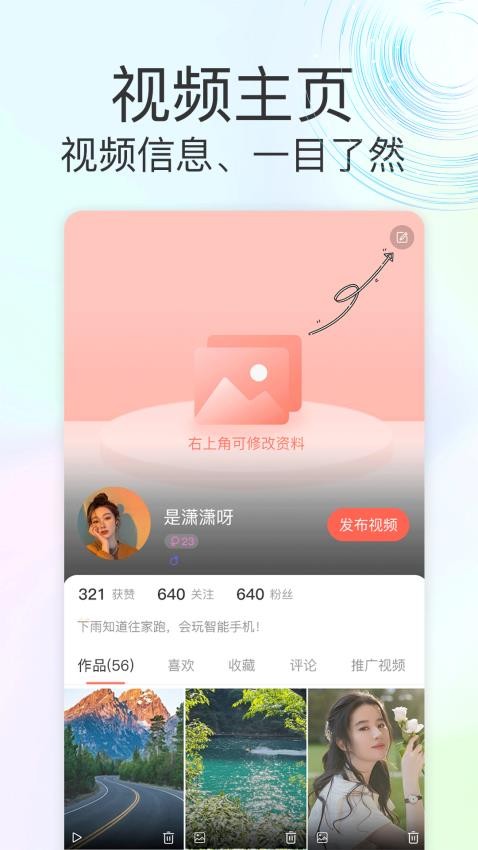 在线发布各种精彩的短视频作品对各种高质量的商品进行介绍;