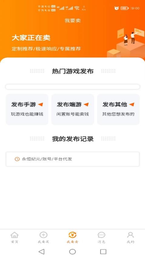 5、点击我要卖,可以在线发布相应游戏账号以进行线上交易。