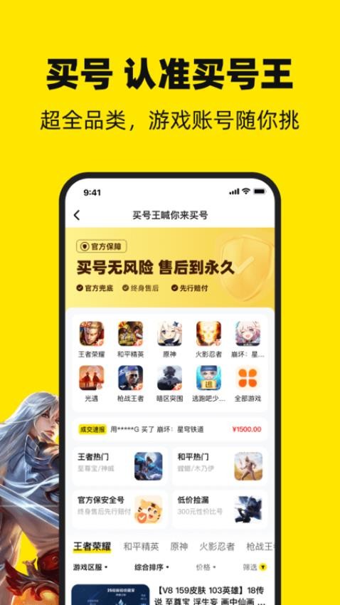 买号王APP最新版本是一款专注于游戏账号交易的服务软件,它是一个专业的一对一游戏账号评估平台,配备了专门的导师为用户提供个性化的咨询和估价服务,帮助用户清晰地了解游戏账号的实际价值。该软件支持各种类型的游戏账号交易,例如《王者荣耀》、《和平精英》、《原神》、《火影忍者》等众多热门游戏。此外,线上购买的游戏账号享有官方售后保障,使用户能够安心交易。同时,软件中的所有游戏账号都经过精心筛选,确保是高质量的选择,便于用户轻松获取优质账号。有需求的用户赶快下载买号王官网版软件体验吧!