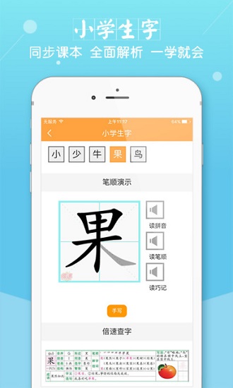 实用工具:英语点读、听说机考、作业答案+解释、英语听写、汉语听写、口语算术和图片检查、口语评价、汉语朗读、汉语背诵、小学生单词等。口碑爆棚。随时随地学习,追高手就这么简单。