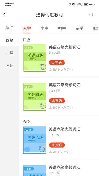 丰富的词汇书:涵盖四六级英语、研究生英语、雅思、托福、大学英语等多种专业词汇书籍;