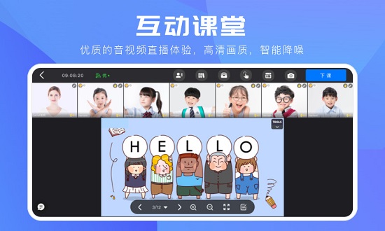 学员和老师可同时进行白板操作,同时提供荧光笔,线段擦除等工具。