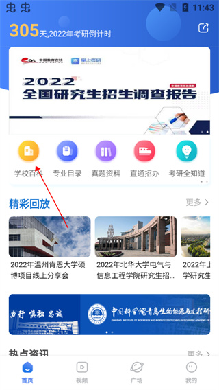 1、下载软件之后打开界面,这里点击学校百科。