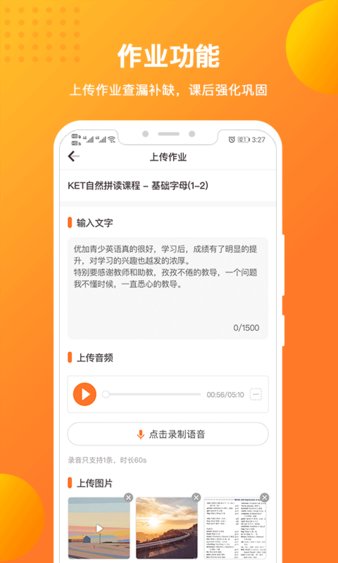 丰富的作业样式,支持普通作业和分天作业,学员提交作业多样化,教师在线批阅,及时查漏补缺,每一次作业见证你的进步,保留每次作业历史记录,支持随时查阅。