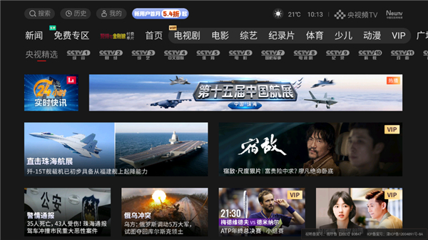 当然,用户也可以通过搜索功能查找想看的资讯或影片,央视影音TV版涵盖了央视经典影片、综艺、资讯等内容,部分内容还可以免费观看哦~
