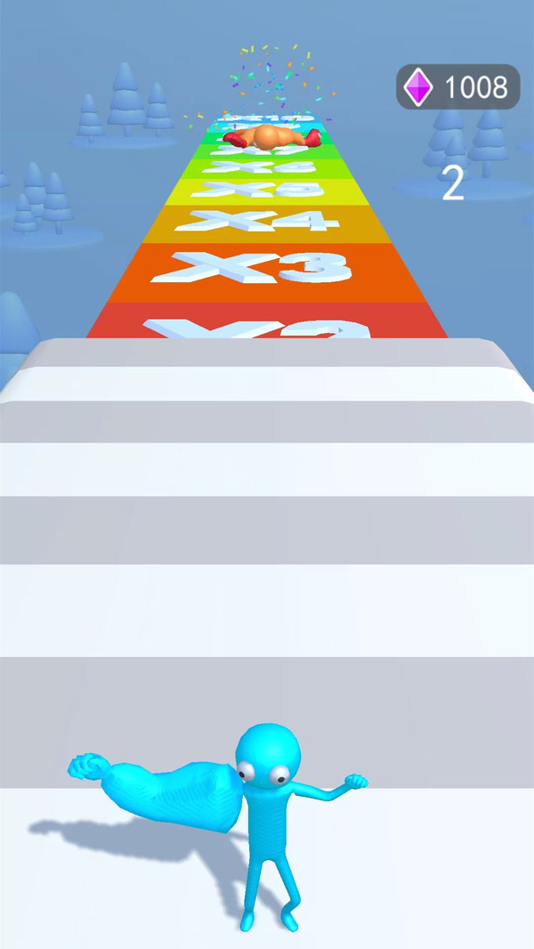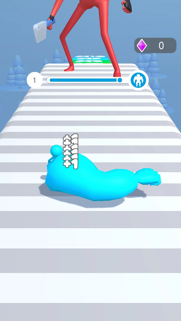 跑酷部分可以用来收集哑铃来提升并强大右臂的动力,玩家需要收集与自己相同颜色的哑铃才能壮大自己的臂力。