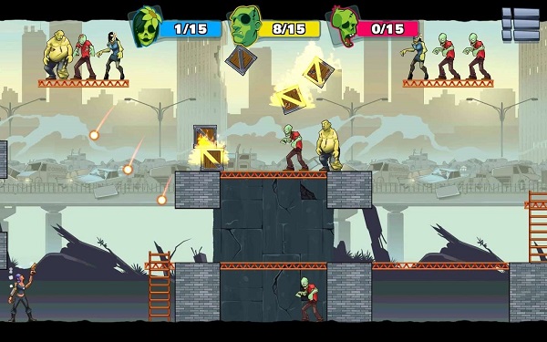 这次带来的依然是该系列的第三部,继承了前作简便的操作和“一击必杀”的核心玩法。玩家只需操控角色发射弹簧子弹,便能轻松消灭那些行动迟缓的僵尸。此外,游戏中有三个拥有不同技能的角色可供选择:初始角色使用弹簧子弹,一位女性角色使用火枪,还有一位老奶奶角色则擅长投掷手榴弹。