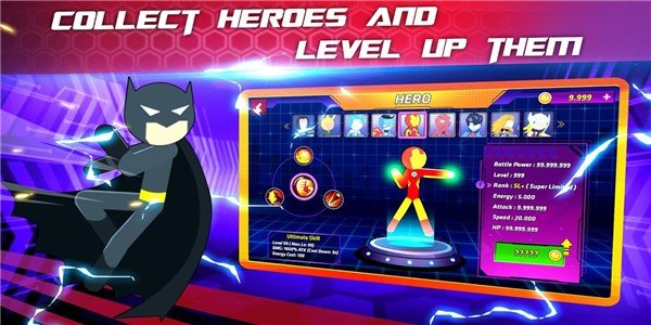 在战斗中不断的积累你的战斗值能够让你释放超强大的终极绝招,当然火柴人角色的技能还可以进行升级。
