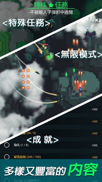 6. 多种类型的飞机和各种首领战斗,体验紧张刺激的空战时光。