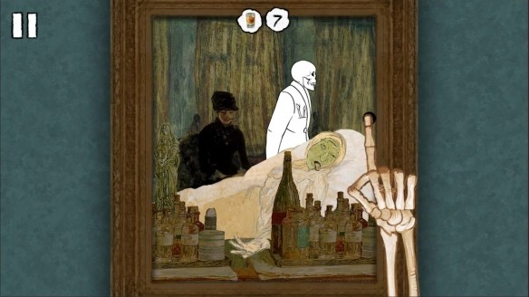1、操控骷髅画家在这个超现实、阴暗而斑斓的手绘世界中穿梭,通过点击屏幕来解开一系列谜题。
