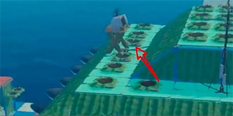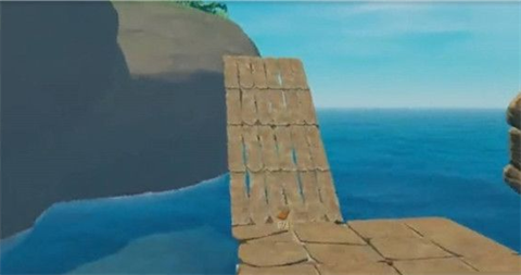 4、斜坡向上搭建至能看到岛上陆地,跳上去就登岛啦。